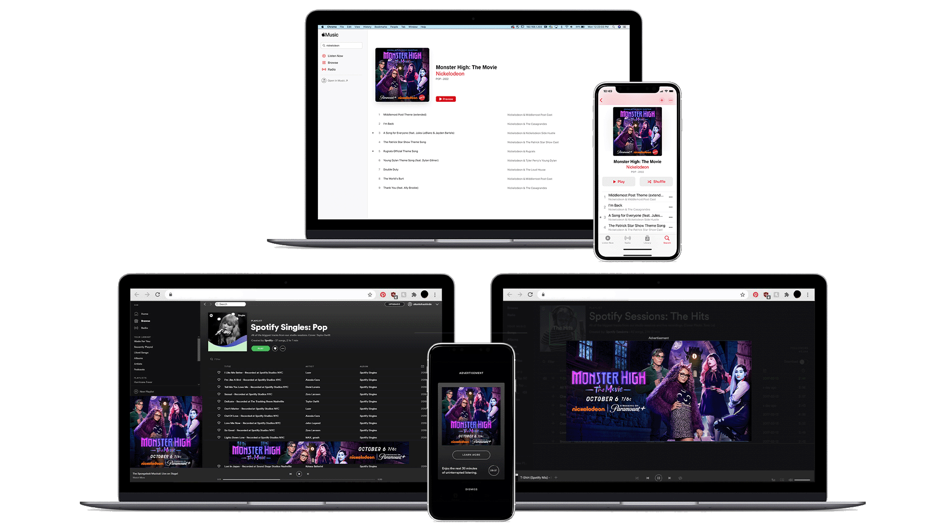New content often is accompanied by the release of soundtracks and digital display assets as part of the marketing strategy. Monster High: The Movie is a good example of when I was making digital assets for the property alongside digital advertising materials for the campaign promoting the release.