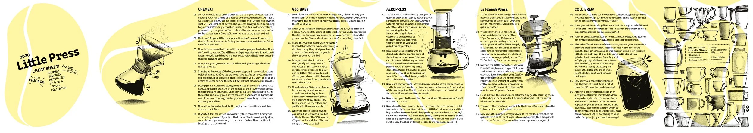 We arrived at an illustrated brand style, along with a library of icons for brewing instructions using various coffee-making tools.