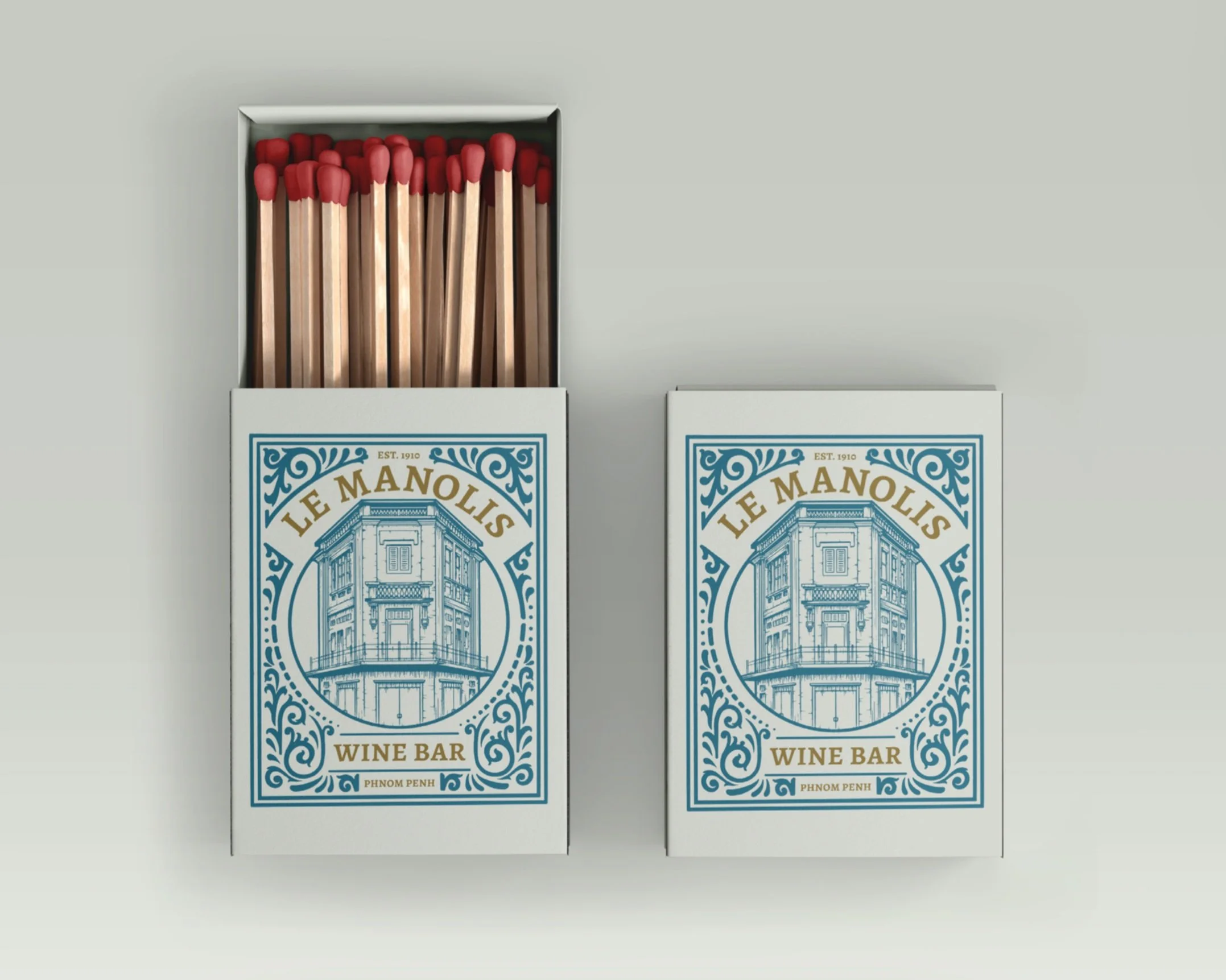 Nataly sent amazing reference for the project. A combination of vintage stamps, classic matchbook art, style reference for the drawing of the building and the building itself. From this reference I was able to develop my first sketches.